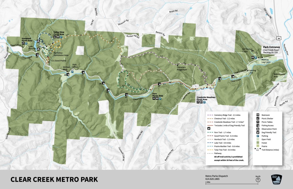 Clear Creek is located about 40 minutes southeast of Columbus, just off OH-33 near the town of Rockbridge. It is located on the stolen ancestral lands of the Shawnee, Osage, Hopewell, and Adena people.