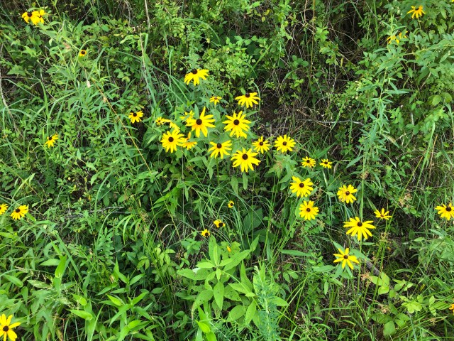 The Trace is a road walk for the first five miles of the day, first trudging alongside an ugly four-lane highway, across a creek, and making a turn into a quieter neighborhood, which dips into the woods and back out again into a wonderland of rolling fields, farms, honeysuckle, and wildflowers. The moment the sounds of the cars and the shadeless asphalt are gone, it feels like taking a deep breath. Wiggs and I meander in and out of conversation as we appreciate the scenery and listen to the sound of the little creek that follows us on our right.