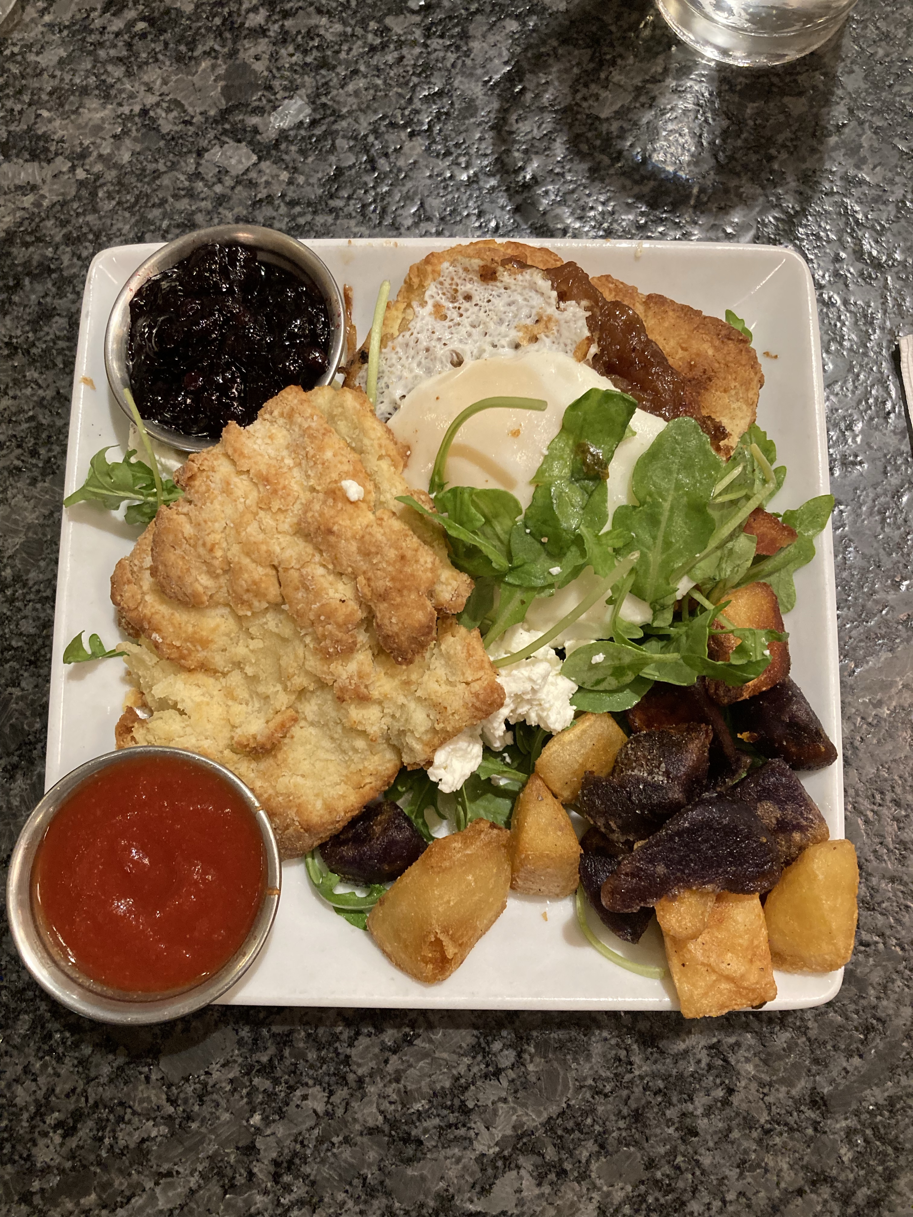 Anna picked me up and drove me into town, which was so, so fantastic. I was really grateful that I didn’t have to Uber it. We caught up for a few hours while eating at Jam, a brunch place with a next-level biscuit sandwich. The server suggested that I get a side of Montana huckleberry jam and eat the biscuit open-faced, with the jam on one half of the biscuit, and I was really happy that I followed her advice. Highly recommended.
