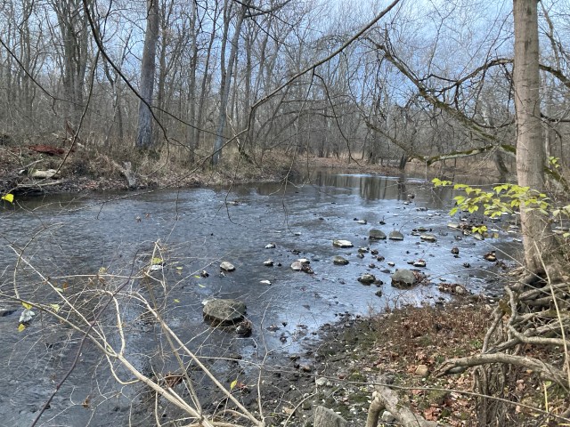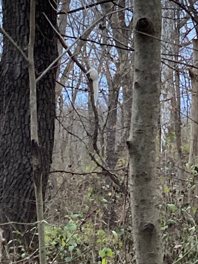 The creek gurgles peacefully a few feet from the path. I see a white (albino?) squirrel climbing a tree branch. I’ve never seen a white squirrel before, and I’m transfixed. I stand and watch it until it scuttles out of sight. As I look on, I pay attention to the forest’s sounds: the squirrels thrashing the leaves around, the birds twittering quietly in the trees. Everything is active, scurrying, preparing to hunker down.