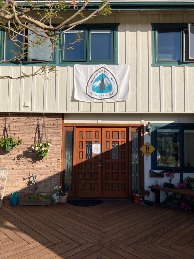 This morning Katie drives me to the Oakland airport, where my flight is delayed, then delayed again. I eat a breakfast sandwich and focus on finishing my book so that I don’t have to carry it on the trail. I’m within 100 pages of the end when our plane finally boards. It’s a quick flight, just an hour, and I read the whole time. When I land I follow Scout and Frodo’s instructions to take the flyer shuttle to the Old Town station and then the 105 bus. A quick walk from the stop after that takes me to the legendary trail angels’ house.
