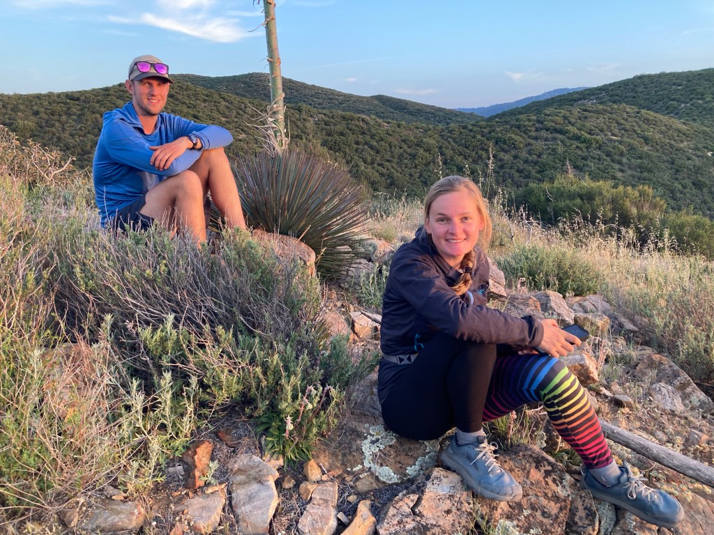 It’s supposed to be hot today, which is why we are starting so early. We need our headlamps at first, but not for long. It begins to grow lighter and lighter as we follow the contours of the trail. We stop to appreciate the sunrise. We eat snacks and drink water. Andy and I swap stories about fun nights and terrible hangovers.