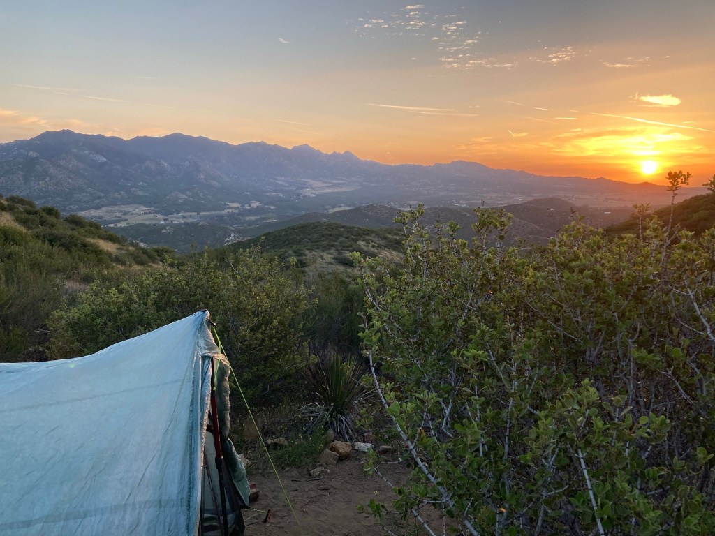Just before 10, we reach the Third Gate water cache, the only cache considered reliable on the PCT. Our first 10 by 10! We did it! The cache is truly impressive, with pallets of gallon jugs full of water. We fill up and then find a spot under a tree. We blow up our sleeping pads and get comfy. Soon Petra catches us and the three of us lay in a row. It’s not long before I’m asleep. I wake myself up drooling and feel like absolute peak hiker trash.