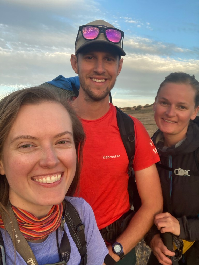 We follow the trail and are smacked in the face with the most beautiful sunset across another meandering meadow. Something collectively infects us then. We take photos of each other in the perfect golden light. We walk slowly and drink in the sunrise. Andy says, “We have really seen some shit together, haven’t we?” 100 beautiful miles so far on this ridiculous beautiful trail. This thin ribbon and its people are everything right now. There is nowhere else I would rather be.