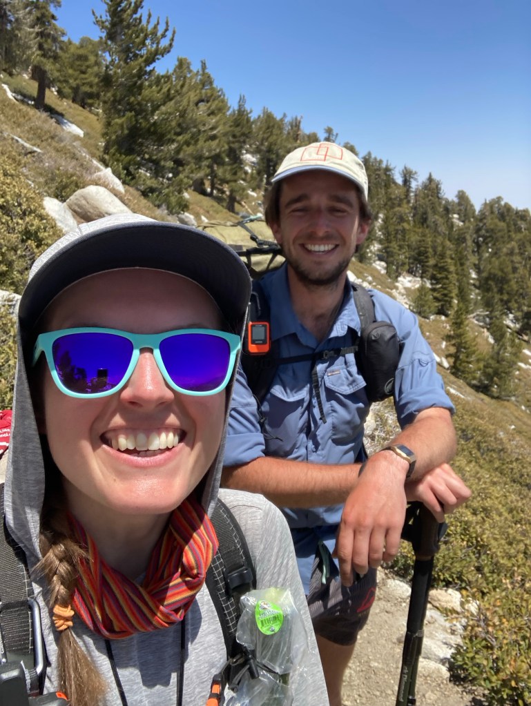We all meet back up at Saddle Junction, take a quick snack break, and then rejoin the PCT proper. By now I’m feeling pretty warmed up. I’ve had some water. I’ve eaten a few bites of the cucumber holstered to my shoulder. (Shout-out to AT tramily member KG for the cucumber inspiration!) I’m ready to go, and this time, I stay pretty close to Andy and Beetle, at least until we reach the San Jacinto Peak trail junction and the altitude hits me.