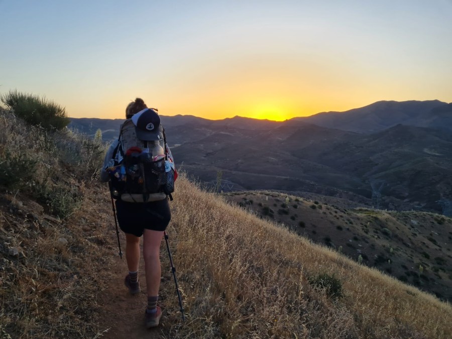 When we finally reach it, we cross to the water cache and find a minuscule spot to set up for camping. It’s dark and cramped, so DLT and I just squeeze in and cowboy camp next to a few already-sleeping hikers. Unbelievably, I’m hungry, so I shove a couple of quick sad tuna wraps into my face and brush my teeth before finally crawling into my sleeping bag.