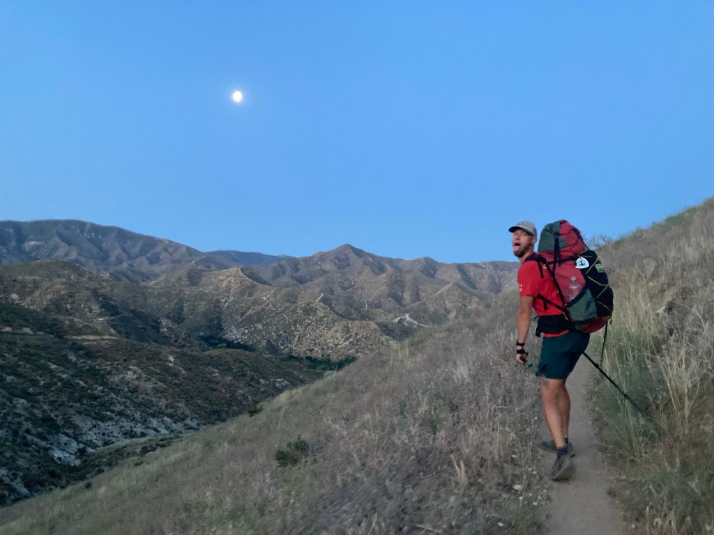 We start the final descent to camp with Knuckles (Christina) and Power Plant (Andrew), but I can’t keep up the pace and I fall back. They end up camping before the end of the hill, and DLT and I continue well after it gets dark. I’m anxious to get to camp and not really paying attention to my feet, and I roll my ankle on a rock. We take it a little slower after that, see an adorable kangaroo mouse, and are joined by a very energetic downhill Carless just before Bouquet Canyon Road.