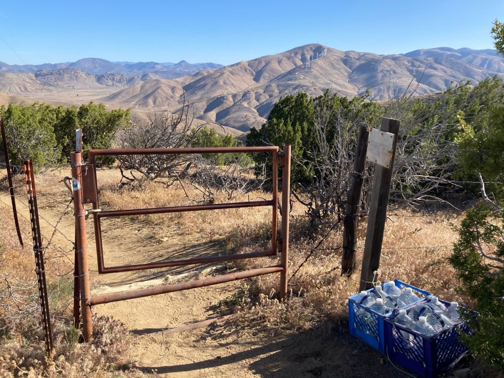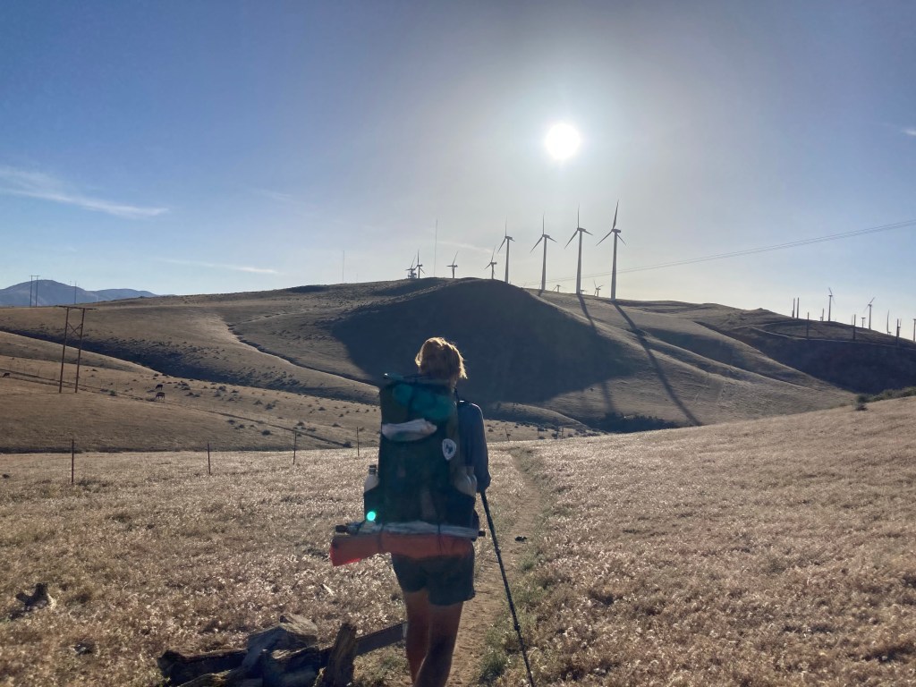 It’s still windy this morning. I don’t want to move at first, but then I remember that we’re going to Tehachapi! Town food! Andy and Beetle! And… hopefully finding a place to stay! I eat a quick breakfast and pack up, then we head down the trail and back into the wind farms.
