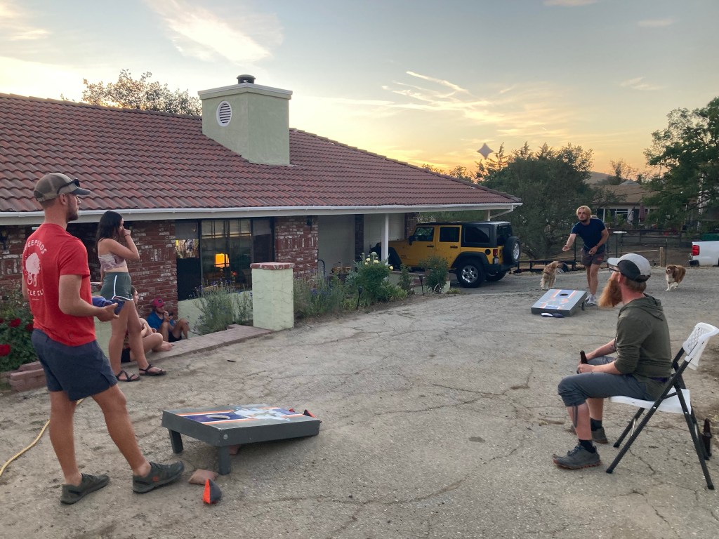 Andy and I play cornhole in the driveway while we wait for dinner. He obliterates me. What kind of Midwesterner am I? Do they even have cornhole in New Zealand? Unbelievable.
