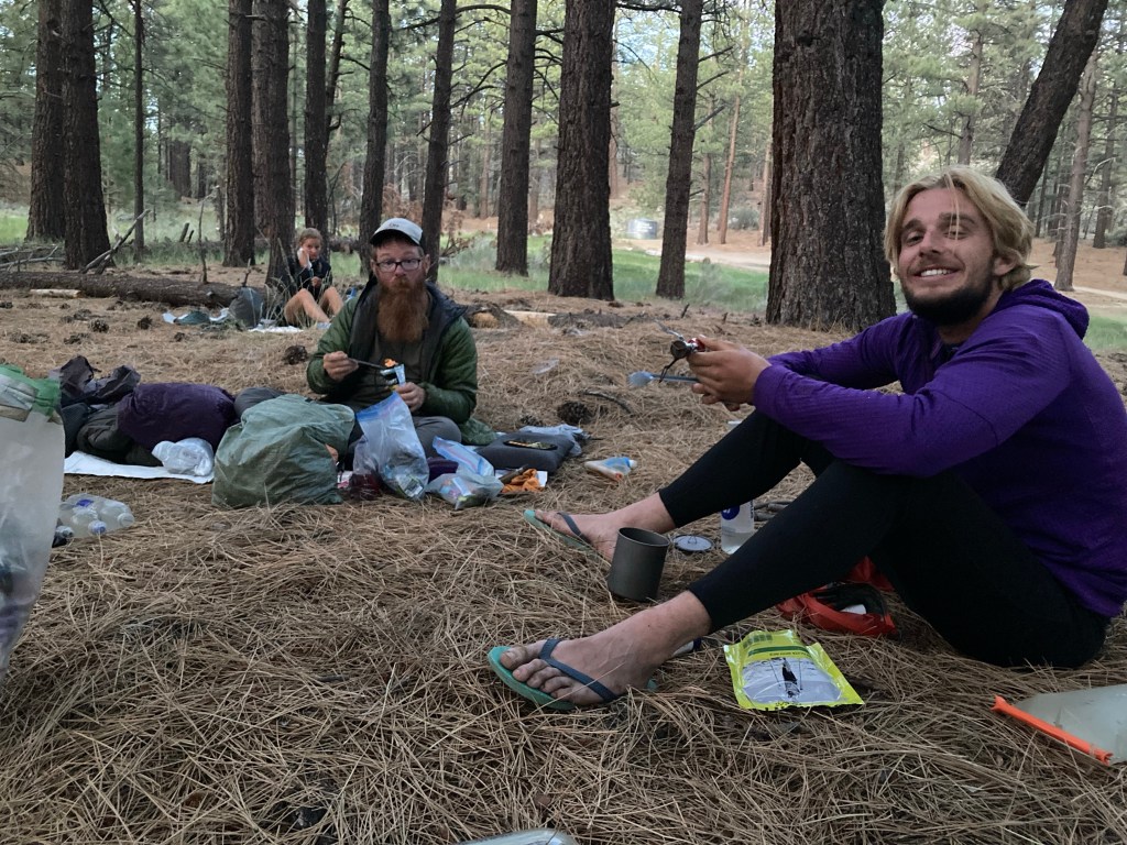 I probably should have guessed that this would be the case, but when we roll into the Landers Meadow Spring campsite and Andy and Beetle are in fact not there, I’m upset. I just don’t understand why anyone would pass up this campsite under huge pines, with the most beautiful water source I have seen in a long time, in service of getting three more miles done. I especially don’t understand why anyone would choose not to stay here when Spice tells us that there is going to be breakfast trail magic in the morning: coffee and biscuits and gravy, my favorite. We call it a day and set up our tents on the soft pines and cook dinner together. I’m excited to sleep in this peaceful place and wake up to magic in the morning.