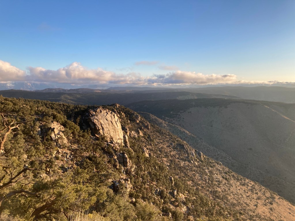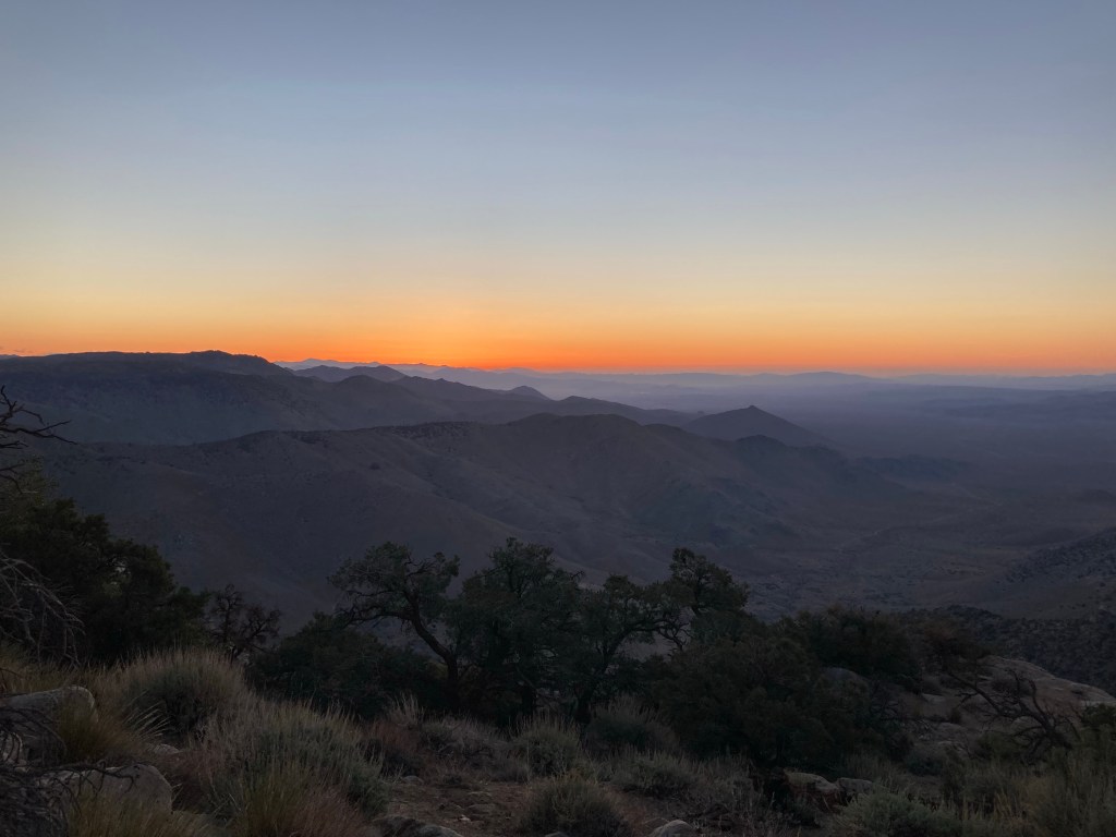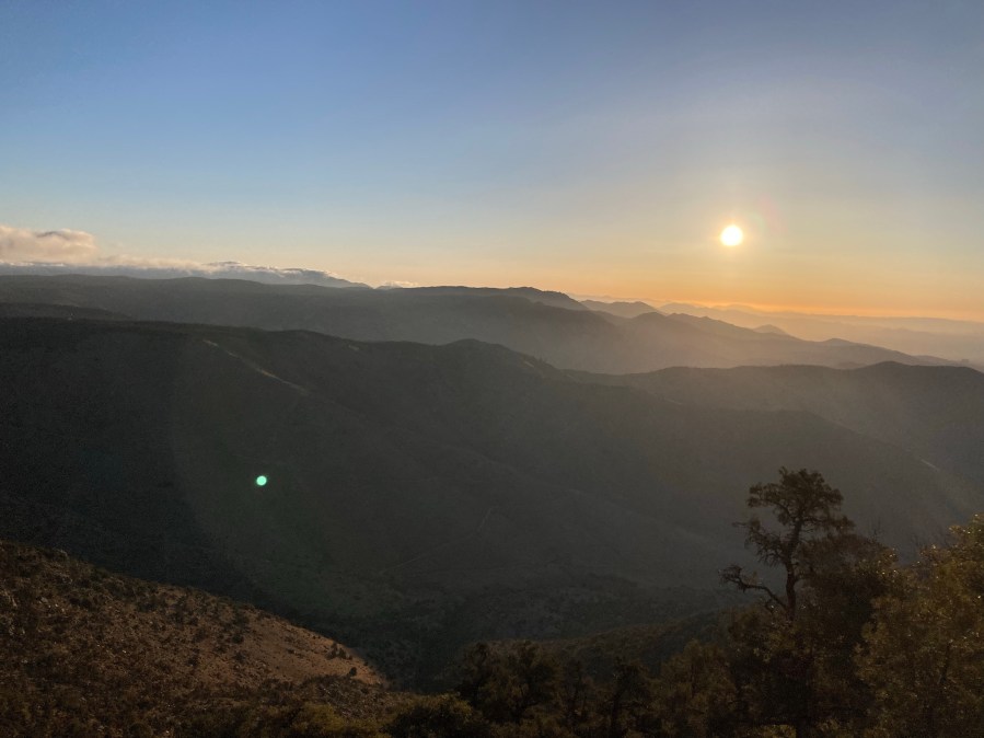 By the time we get to the top, it’s nearly sunrise. We find a campsite that is mildly protected from the wind and have a snack and water. I do not feel good this morning. My arch and achilles are tight and burning. I was trying to get that hill done as fast as possible, and I didn’t stretch or take ibuprofen. There’s no time to stretch here; the wind is still whipping around us, and I can’t feel my hands. Keep hiking.