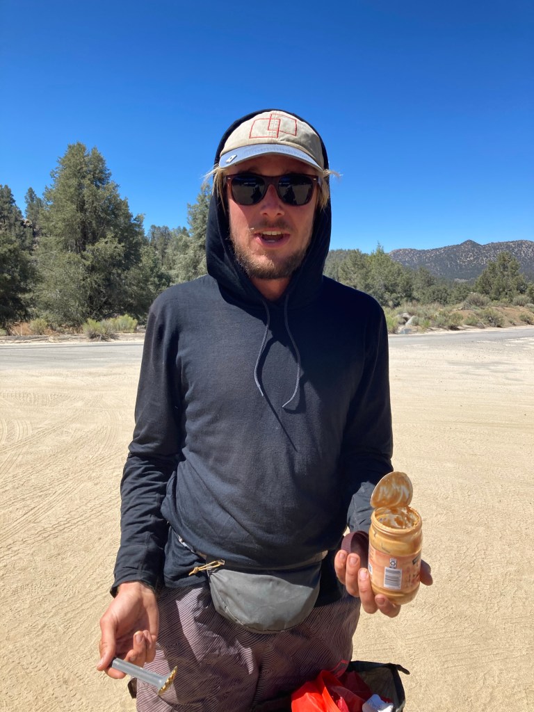 Catless, DLT, and I don’t wake up early. Nothing opens until 9 anyway, so we don’t see the point in rushing to Kennedy Meadows. Instead, we take a long time getting up (me especially, as usual). We eat breakfast (me in my sleeping bag, getting oatmeal all over it like the creature I am), pack up, and say gooodbye to this most beautiful river and campsite: our last in the desert.