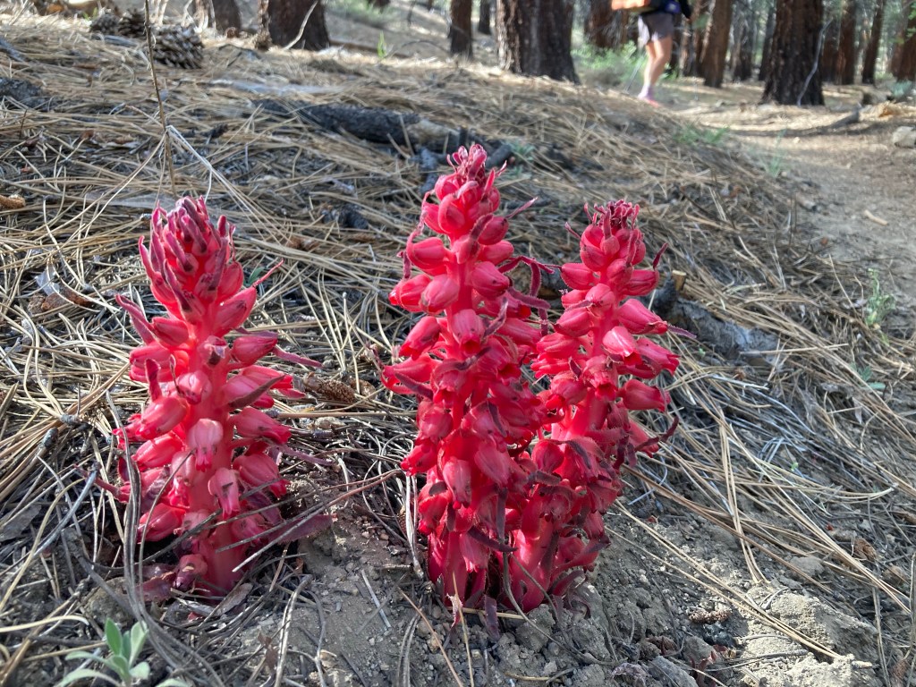 We hike in a conga line for a while, which typically stresses me out, but it’s nice to talk to the Belgians a little more. I walk with Rainbow, who tells me she works with at-risk youth back in Gent and that she’s thinking of making a game for them related to the animals she sees on the PCT. Soon we reach a crossing of the South Fork of the Kern River, where a lovely bridge spans the gurgling water. It’s still so amazing to me that we’re going to be hiking in an area where there’s water everywhere! Goodbye, long carries! The Belgians leave before the thee of us do. We just sit there next to the water eating our bars and taking in the start of a new section.