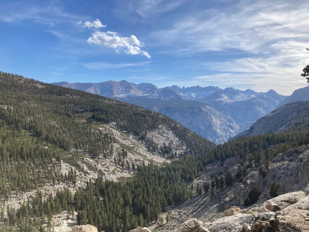 In 2017, Tyndall was a torrent and we had to cross upstream in the meadow. Tonight I can see the rocks and hop right across. We find good sites and set up our tents. Catless goes right to bed, and I eat dinner with Jumbo down by his tent. I’m proud of us today. We hiked Tumanguya, then eight more miles to put ourselves in a good spot for tomorrow.