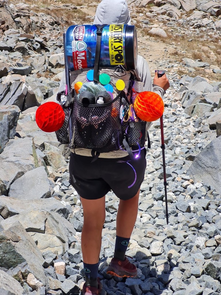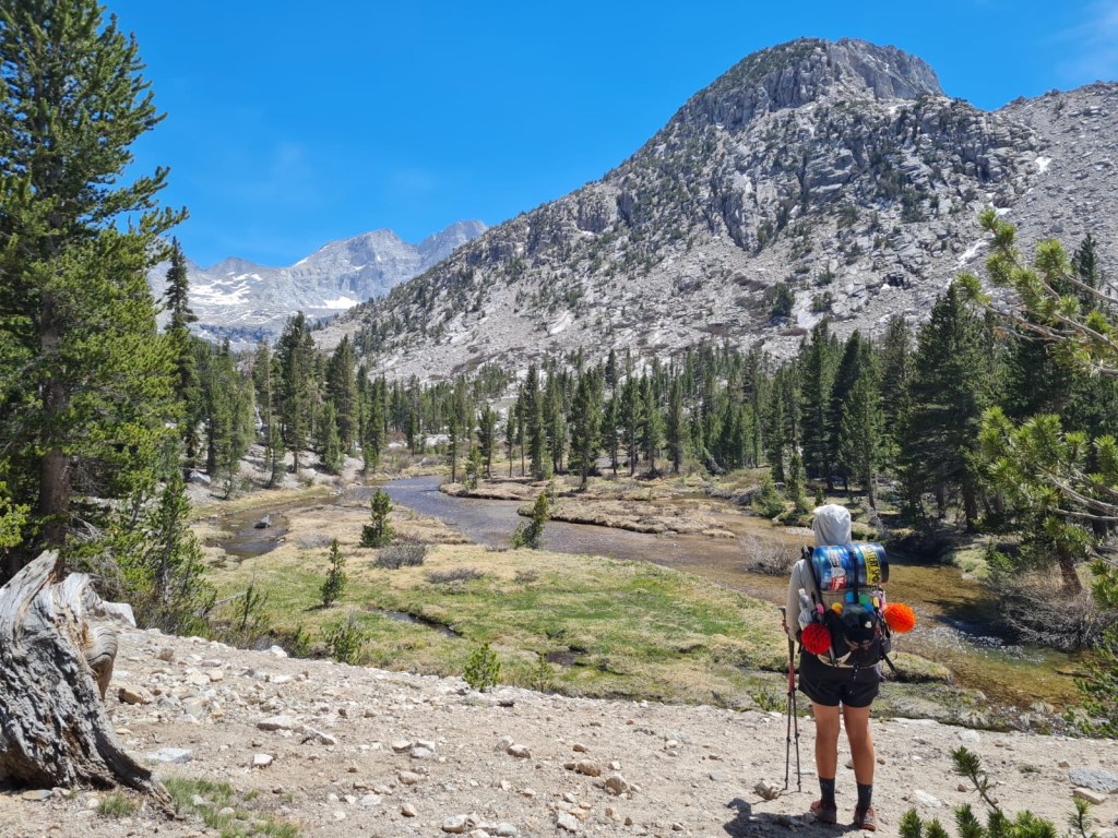 We all collectively try to keep our cool as Jupiter walks over towards us. He is the chillest dude, just another hiker—albeit a famous one—out here enjoying the adventure. We talk to him about his journey so far. He asks if we’re going into Bishop and tells us that it’s a great town. Noticing my headband, he wishes me a happy birthday. We take a group photo, wish each other well, and then he’s off.