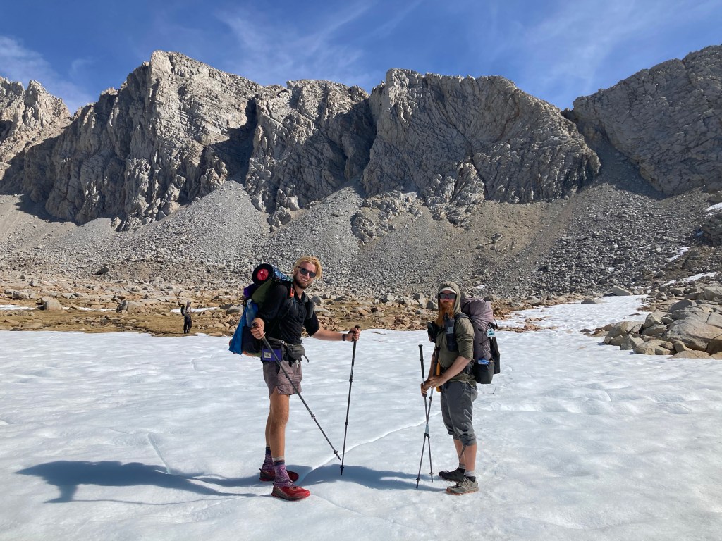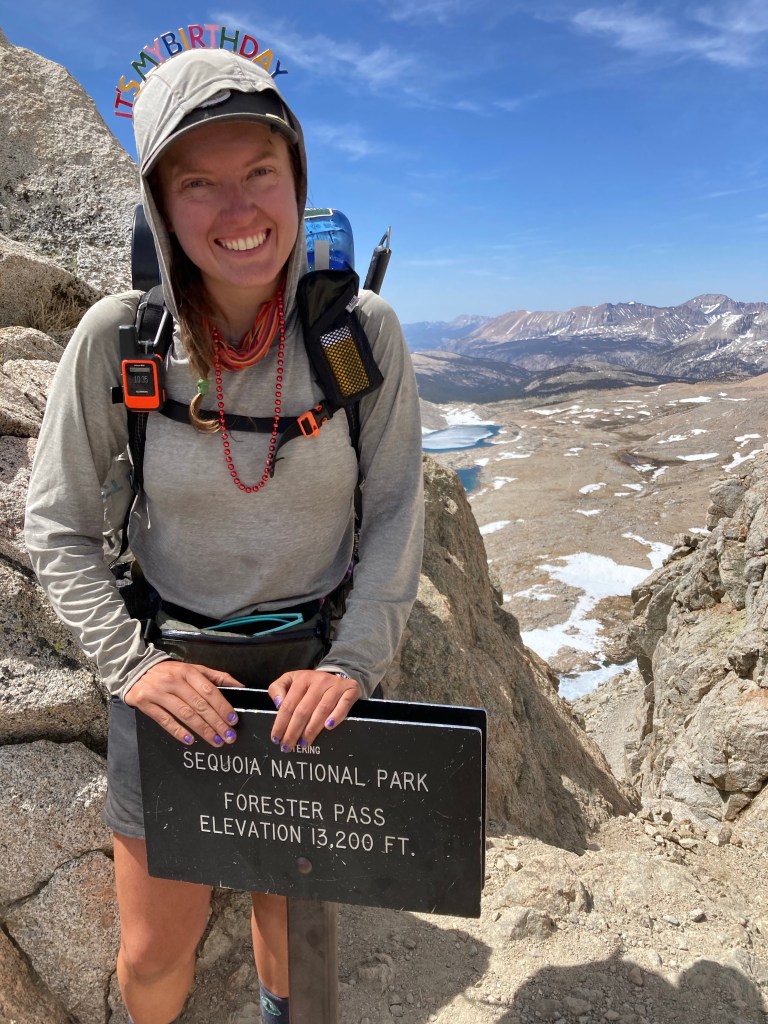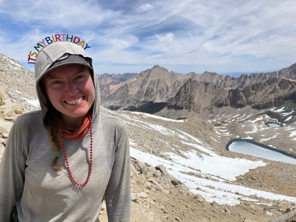 The altitude hits me again on this pass, and I have to take it slow. It gives me an opportunity to look back into the snowy, lake-studded basin we just came from and the craggy mountains in the distance. It’s just as unreal as the first time I was here. I can’t wrap my head around the existence of these mountains. They are so towering, so beautiful and imposing. As I walk up, I think about how lucky I am to be here and how epic it is to celebrate another trip around the sun by climbing the highest point on this long, special trail.