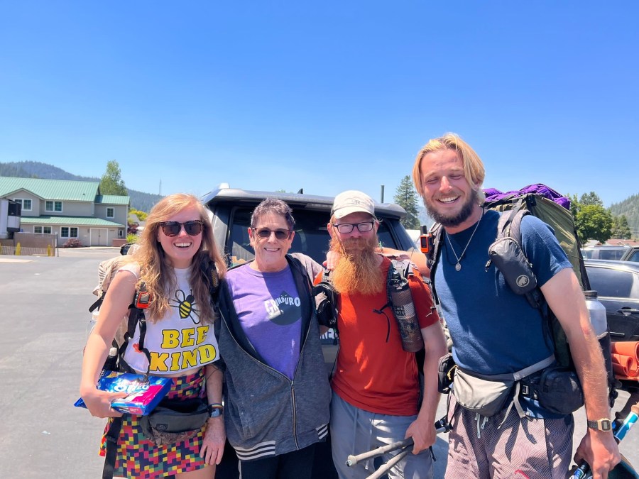 Around lunchtime we pack up and Debra takes us to Safeway so we can resupply. In the parking lot we find Veto, who takes a photo of the three of us and our lovely trail angel. Thank you for everything, Debra!