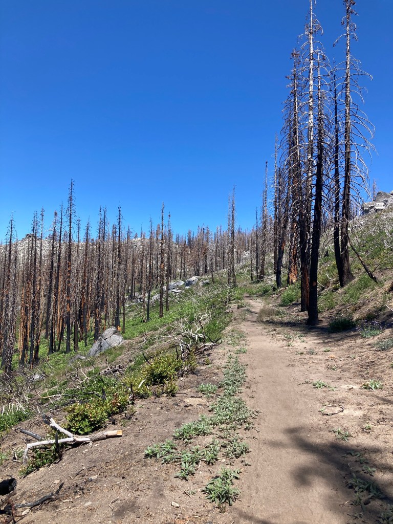 It’s technically a climb for the first three miles, but it’s so gentle that I don’t really notice. The burn area picks back up again somewhere around the ridge that follows. It’s not too bad yet, but I can see why some people skip this section, especially considering that it’s going to be 102 degrees today and there’s essentially no shade.