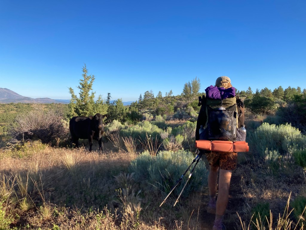 No matter how you describe it, it’s been rough recently, and today is no exception. We leave camp at a decent time, not long after 6, and we stick together for the first seven miles to the water cache. On the way we pass through a little gathering of cows that is slightly too close to the trail for my comfort. But also, there are calves and they’re so cute! Hello, cows. Not long after the moo boys there’s a very nice trail register, which we sign and peruse to see if there’s anyone we know. It looks like Stinger, Spice, Mouse, and Fits are ahead of us now. Guess they started moving after Chester!