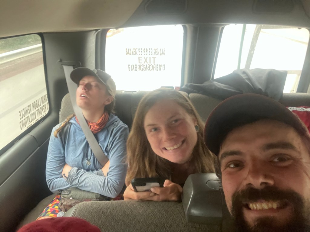 Back on the road, we finally find the interstate and I promptly fall asleep, which is impressive given the volume at which the long playlist of mariachi music is blasting. Apparently I sleep through the crossing into Oregon. So I don’t have a great photo of me with the Oregon sign, but I do have a hilarious photo of me sleeping that Barbara and her partner took. Welcome to Oregon!