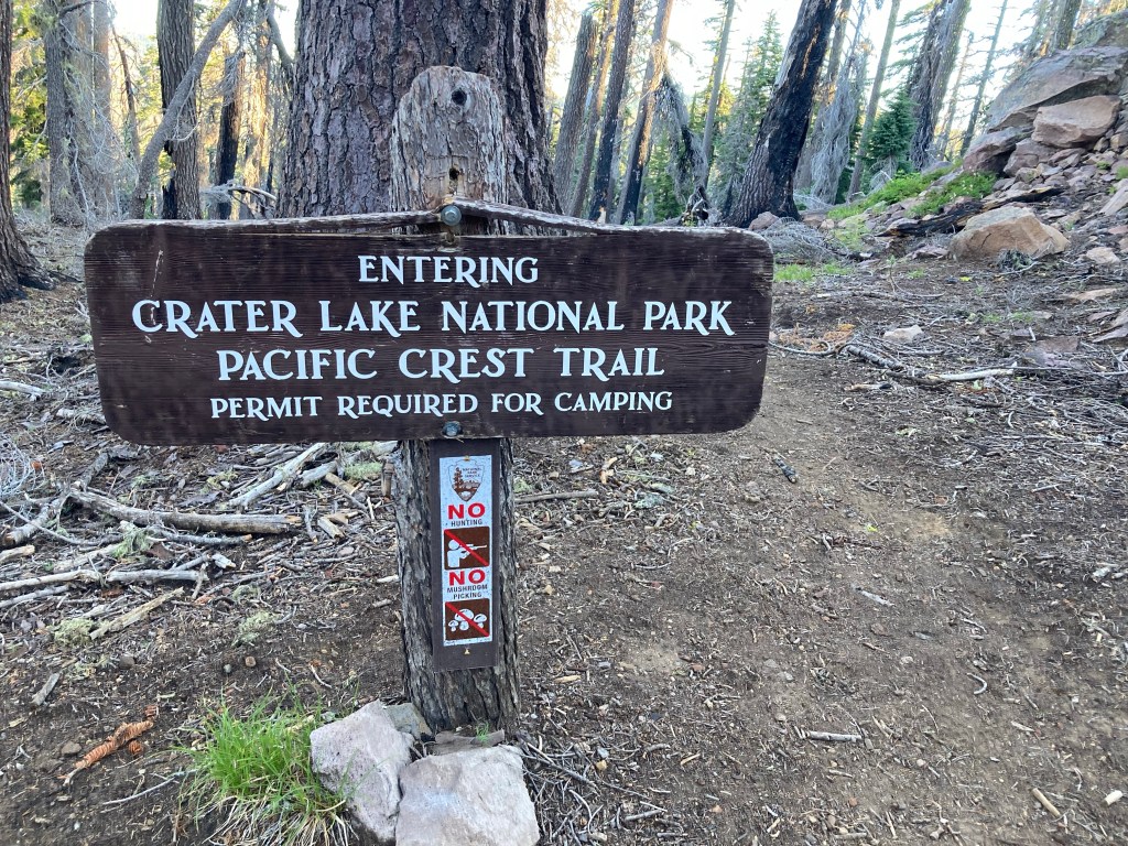 I get really excited when I see the Crater Lake National Park sign. I still can’t really believe that I’m out here hiking the PCT even this many months into it. Crater Lake has been a huge milestone that I’ve been looking forward to for a long time, and here we are.
