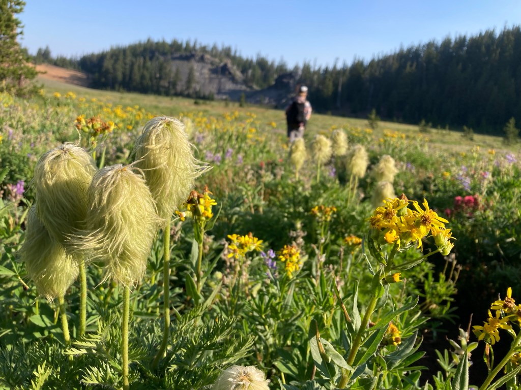 I wake to the sound of Jumbo opening his oatmeal packets. He always tries to do this quietly so that Tribute and I don’t wake up and he has more time. So I go back to sleep. The next time I wake, I hear tent stakes clanking together, check my phone, and realize it’s 6:30, well past when we usually get up. I’m very impressed at myself for the speed at which I go from unconscious to packed up. Tonight we’re planning to go to the Big Lake Youth Camp, where we hope to get dinner, showers, and laundry before we go into Bend tomorrow. We desperately need all these things. It’s been twelve days since our last actual town stop, and we all feel disgusting and depraved.