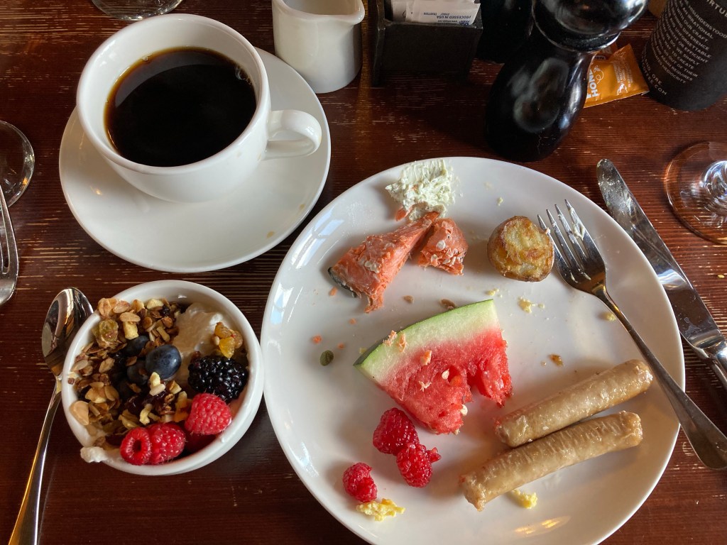 Our reservation is at 8:30, and we immediately go ham. And salmon. And yogurt and eggs and sausage. The parfait station is probably my favorite. I load the yogurt high with berries and granola and absolutely die in pleasure over and over again. Jumbo doesn’t even finish his second round, but I go back for thirds and pack some out in my handy dandy quart bag that I slipped into my thru pack just for this reason.