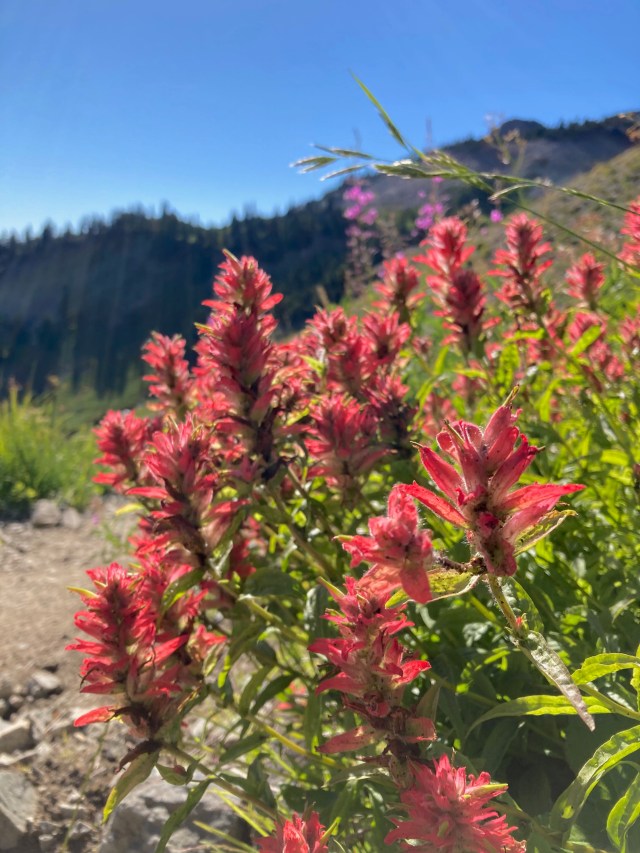 I wake up in the middle of the night to pee, and the sky is on fire with stars. Comets shoot across the sky leaving liquid tails of light. The Milky Way dances in a vertical arc above me. I lie there staring up. I cannot take in the privilege of this life. To see the whole deep sky, to fall asleep in the mountains, to lie on the ground cradled by wild paintbrush and pikas and friendship. What even is this. What did I do to deserve to be here. I love this trail. I love this trail. I love this trail.