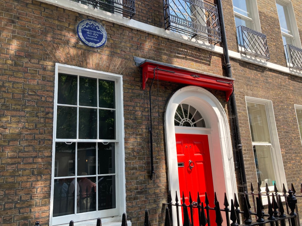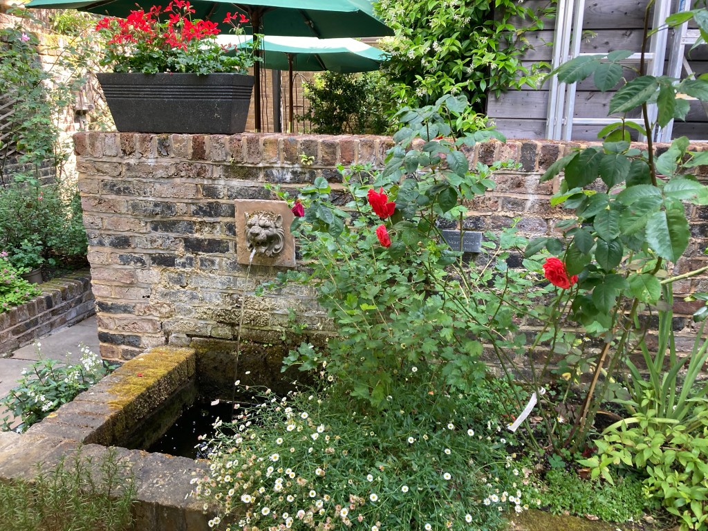It’s a relatively short Tube ride to the Charles Dickens museum. I’m not the world’s biggest Dickens fan or anything, but I like his work, and there is something special about being in the place where the person who birthed inspiring words lived. We wander about the five stories looking at artifacts, books, manuscripts, furniture, and other items belonging to the writer and his family. Some items of note include Dickens’s desk (he sat right there and wrote all those stories!) and his formal suit that he called his “fancy dress.” Same, Dickens, same. Love a good fancy dress, me. There’s a cafe on the ground floor with a lovely little garden. We sit there next to a fountain and enjoy some cold drinks. I could live in London if I had a little garden like this, all flowers and flowing water and stone.
