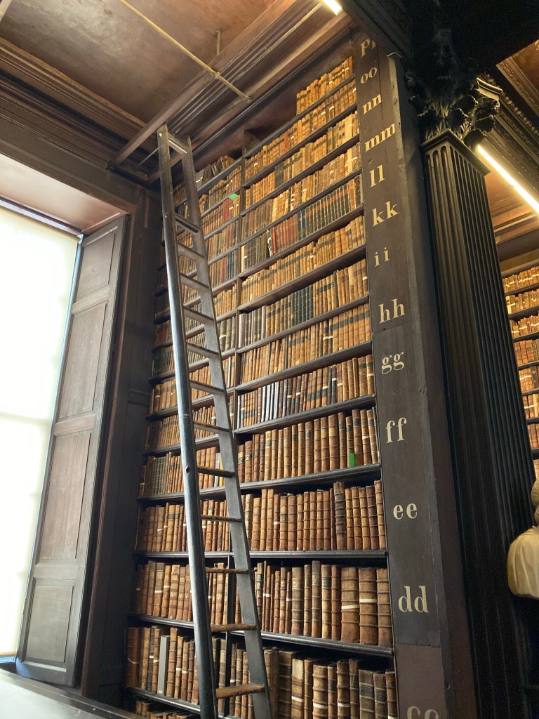 The Book of Kells is the crown jewel in Trinity’s collection. It’s a very old and extremely well-preserved illuminated manuscript that contains the four Gospels. It dates back to about 800 AD, and it’s named for the monastery in which it was created. We don’t get very long to look at it, and there’s only one page open, but just from that glimpse you can see how incredibly intricate the work is and, by how thick the volume is, how long it would have taken to create. Even just being in the presence of such a work inspires a hushed awe.