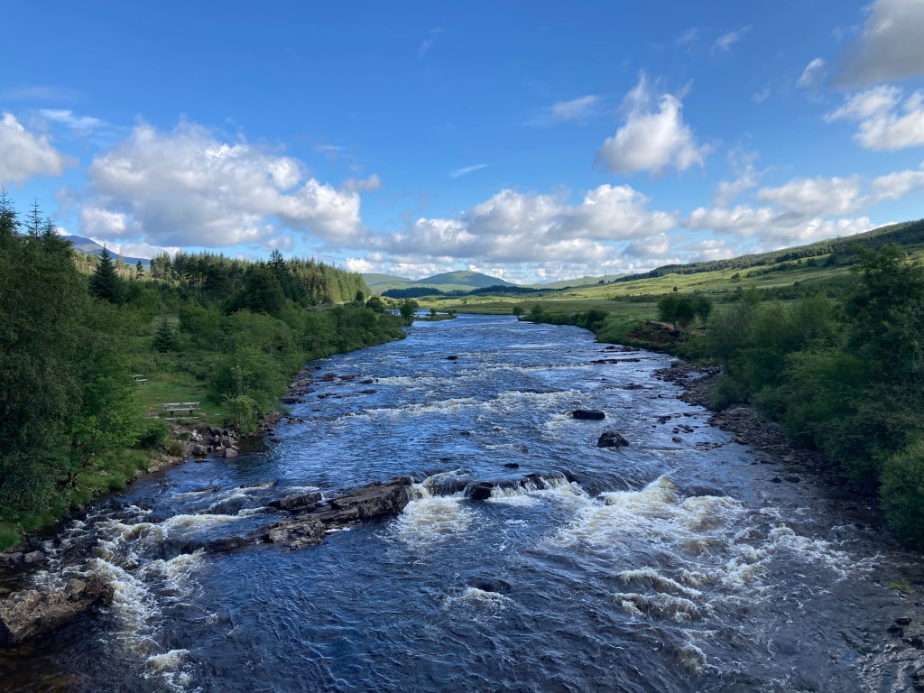 I walk past the hotel and over the bridge. The River Orchy is sparkling in the almost-sun this morning, a pleasant little rippling stream. (I’m running out of words to describe things and as I write this I’m too far behind to do better. Mash, is this what you meant when you called my blog “ugly” and “lumpy” and “raw”?)
