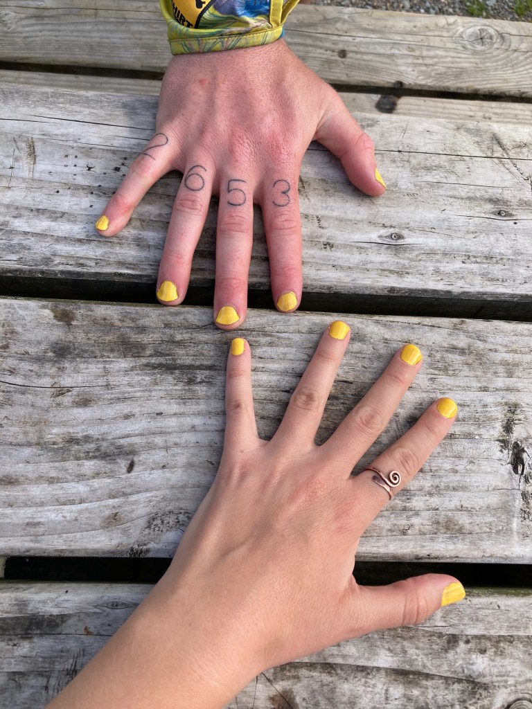 Mash is finishing up his packing when I cross the bridge and arrive in the campsite. I plop myself down at the picnic table and pull out the yellow nail polish I bought in Dublin and keep forgetting to put on. “Do you want to do this now or wait?”