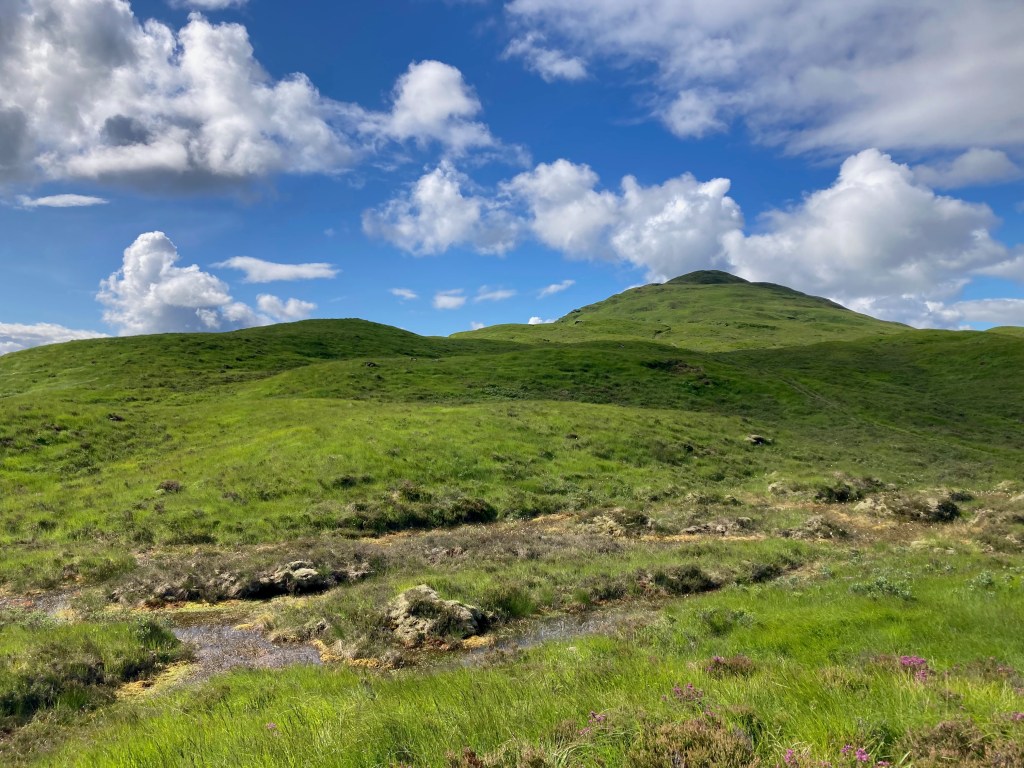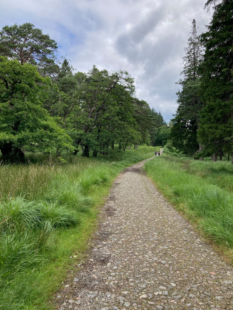 Right after that we start the Parliamentary Road section, which was created in the early 1800s and was part of a huge project to establish long-distance roads through the Highlands. It’s tightly packed rocks sort of like cobblestones. From the way Mash talks about it, it seems like some hikers dread this section, but it doesn’t seem bad at all to me. It follows some woodlands for a while, then empties out once again into a sweeping landscape that is hard, impossible, to take in.