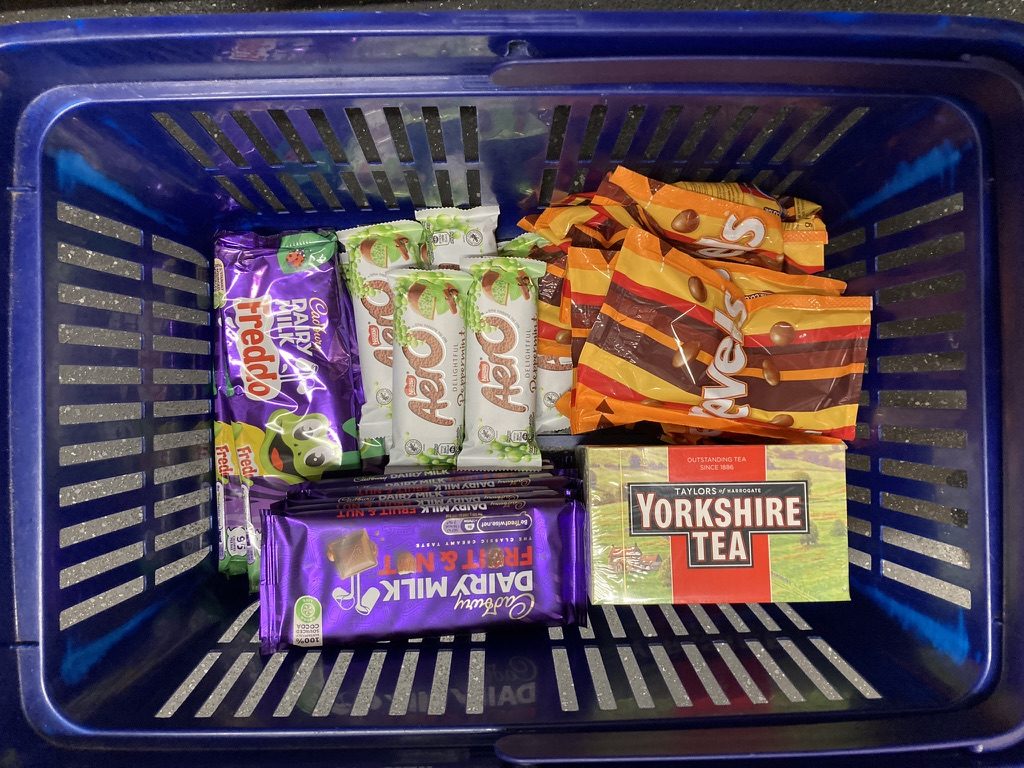 After dinner we navigate to the one still-open grocery store near our hotel, a tiny Sainsbury’s, and raid the candy aisle. They don’t have share size bags of Revels, unfortunately, so I get as many of the small size as I think will fit. We also pick up some Cadbury Fruit and Nut, some After Eights, Aero Bars, and various other treats. Will it be enough to tide me over until the next time I’m in the UK? Only time will tell.