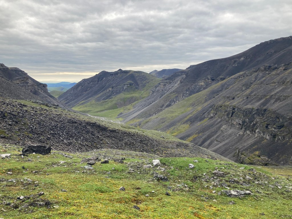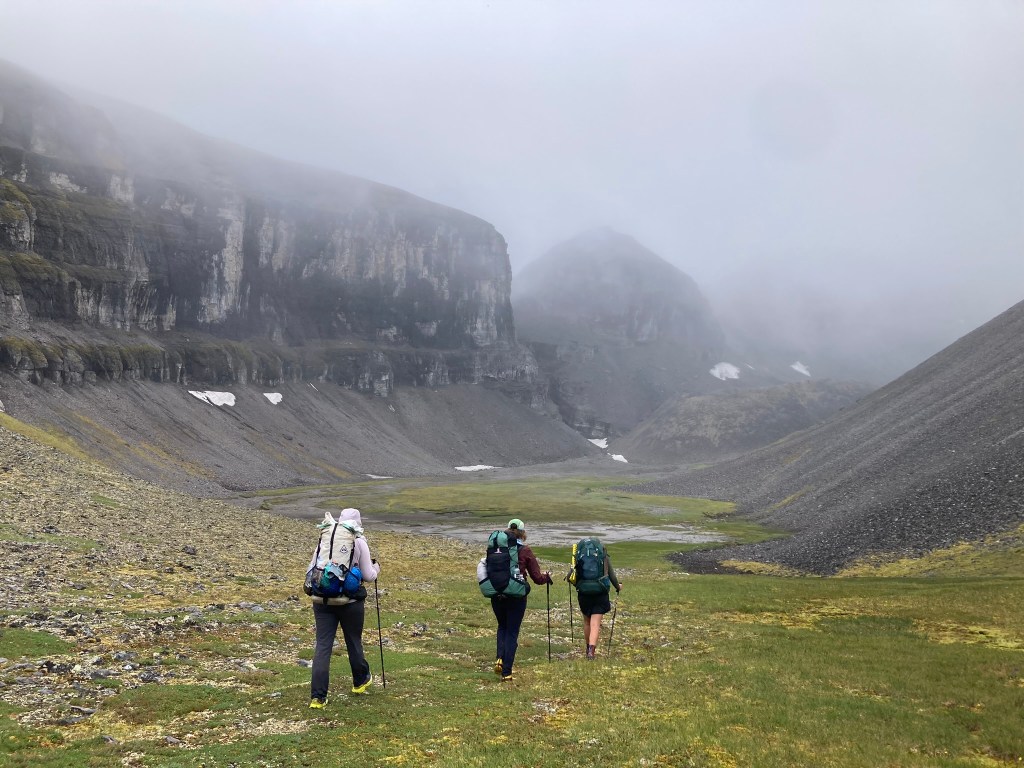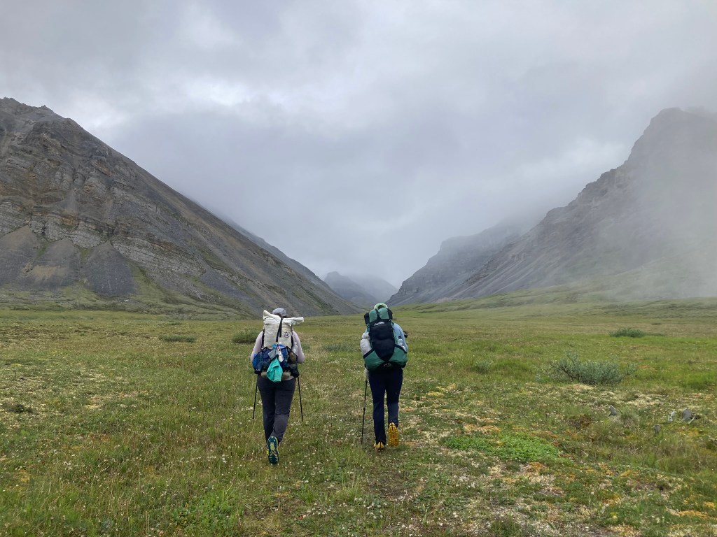 There’s a small incline as we turn right and work our way up the next section. It becomes hard-packed ground strewn with flowers and mosses. No bog here. Carrot recalls how Andrew Skurka, a big-time hiker dude and superathlete famous in our little world, described a certain flower as being indicative of “good walking” in the Brooks. We think we see that flower, so it seems to be an indicator we’re on the right track.