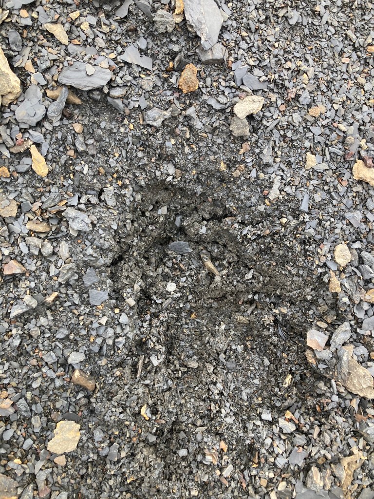 There’s moss at first, then it turns into small scree, but the good kind that you can actually walk on and that sinks in with every step. I engage 100-step mode and don’t really turn it off for the next couple of hours. Carrot spots a bear print at one point. Someone went up here looking for a snack! If they can do it, why not us?