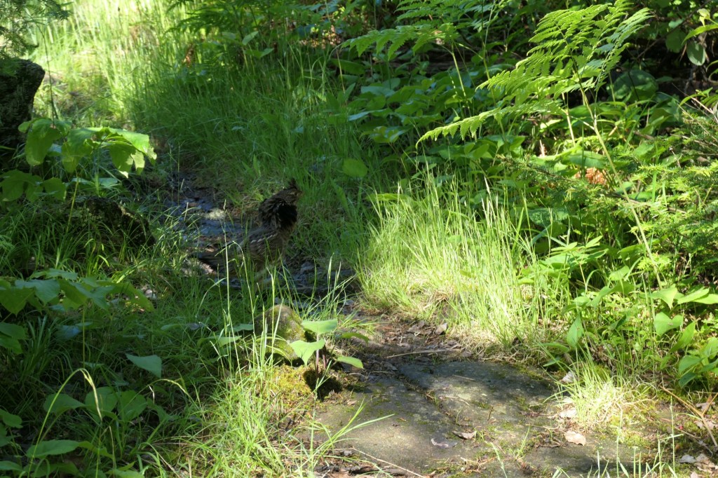 The morning was beautiful but kinda tough at times. Machine called the trail a car wash because it’s overgrown in places and all the leaves were soaking wet this morning so it felt like going through those huge floppy car wash brushes on either side. There were also several rocky outcroppings with great views. One of these rocky sections was totally covered in daisies! I love a good daisy, so I spent far too long taking photos of them in the morning sun. We stumbled upon a mama grouse with babies at one point. It was very cute.
