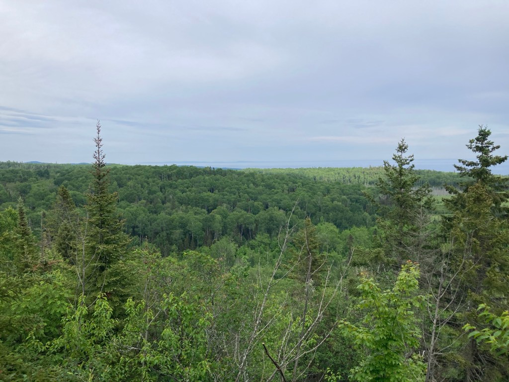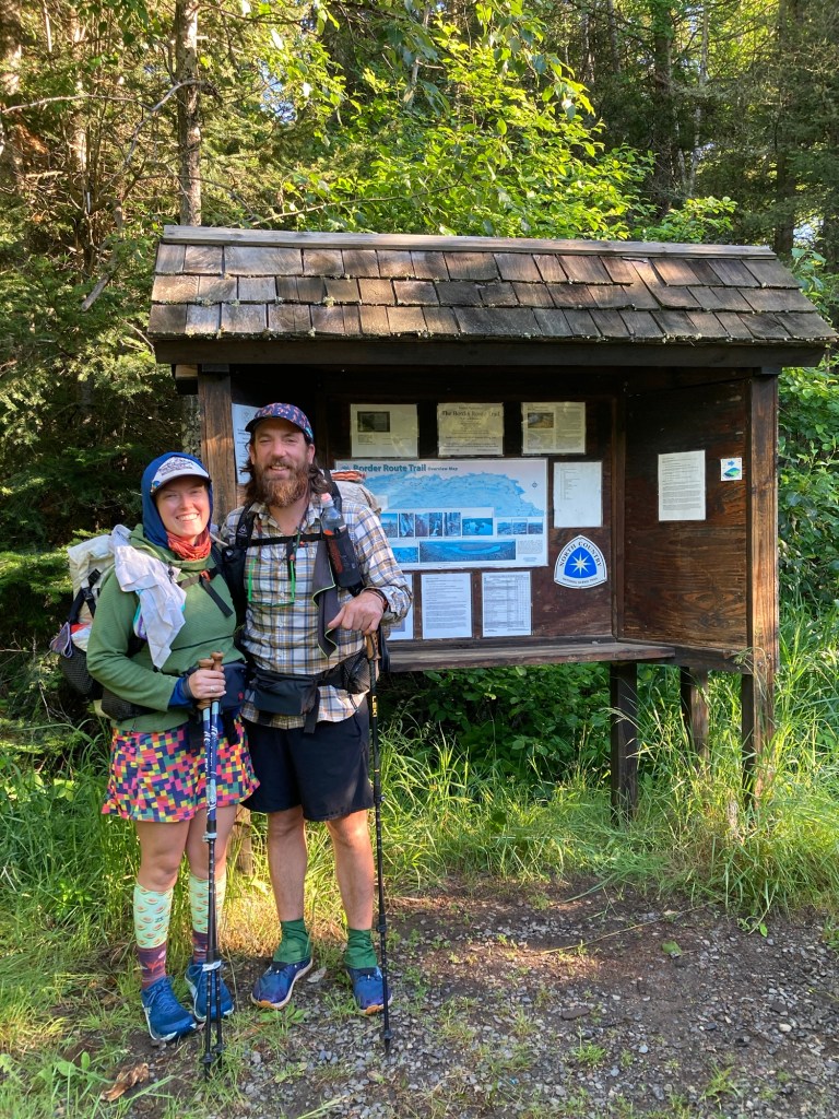 The highway turned into a small paved road and then more gravelly, and then we were at the parking lot. Slapshot gave me his puffy to borrow and send back at the end (because I didn’t bring mine because I thought it was summer and it would be warm even in Minnesota… amateur hour) and we said our goodbyes and thanks, and then, because the mosquitoes were already swarming, we got started on the trail.