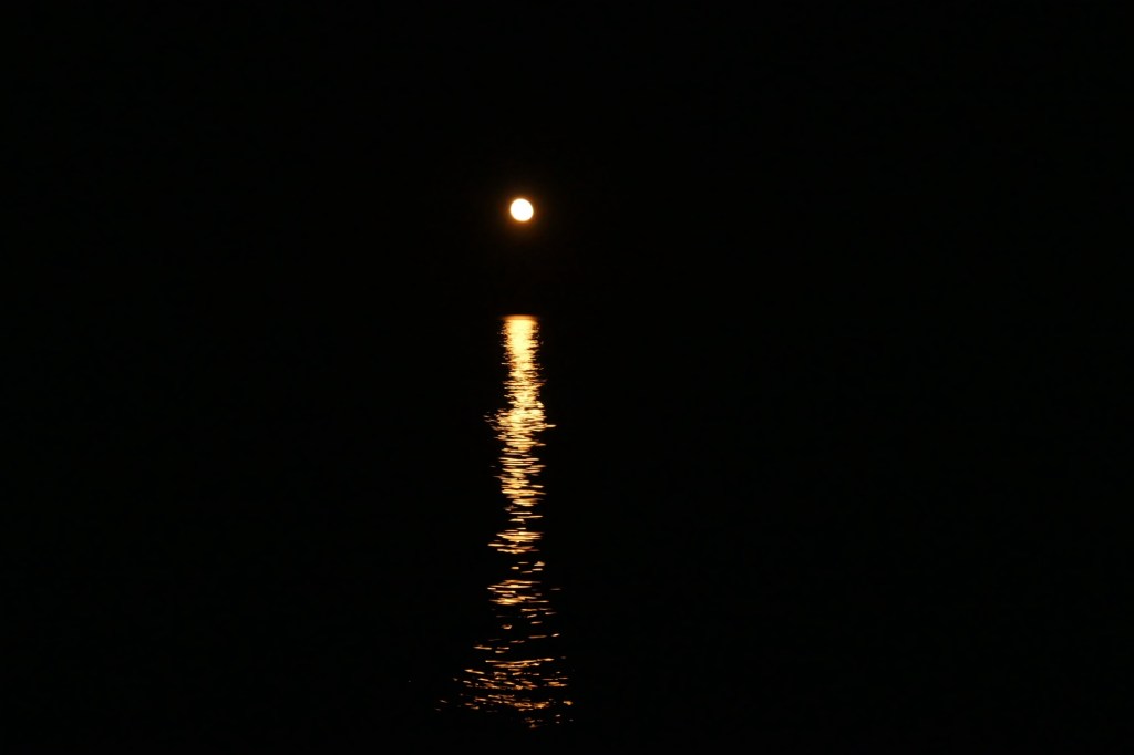 I didn’t sleep well because I never sleep well the first night of a backpacking trip, but on the bright side, the moon was absolutely gorgeous last night, huge and round and low in the sky reflecting on the water.