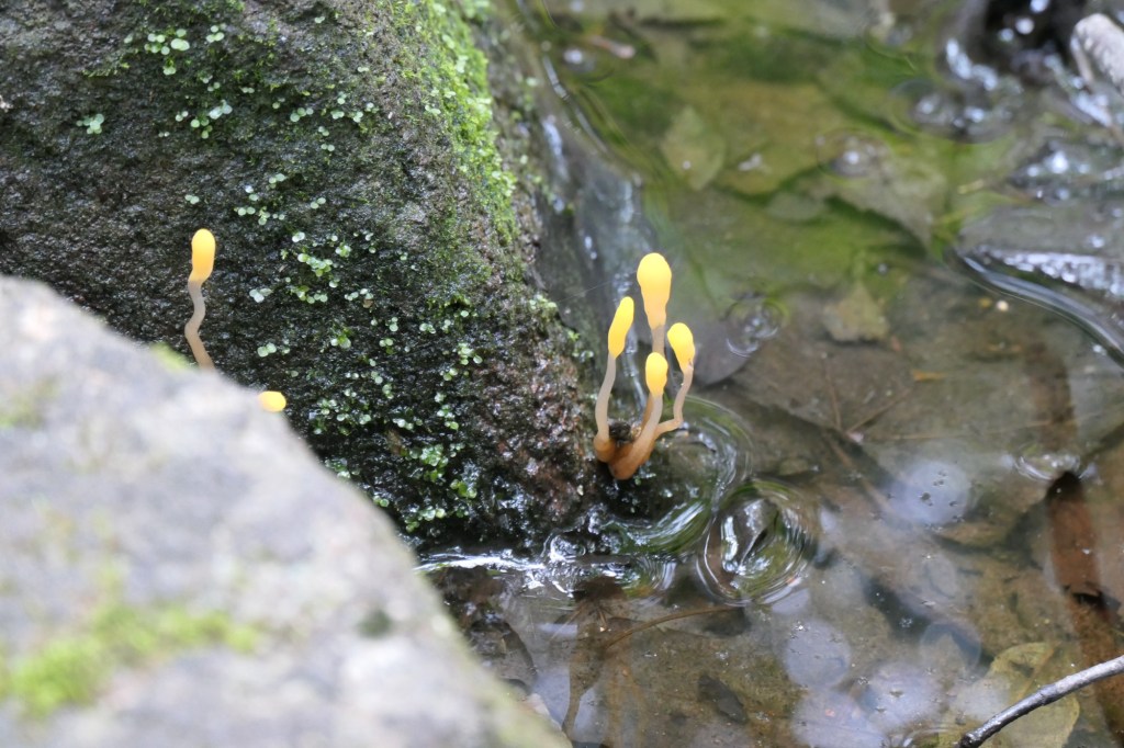 I don’t want to leave, but alas, we must. I keep waiting for the trail to go to shit all afternoon but it just doesn’t. There are roots, and there is some mud, but it is contained. And in one mud pit even, I notice these little orange fungi sprouting up among the footsteps. Like magic. Even the mud is beautiful today.