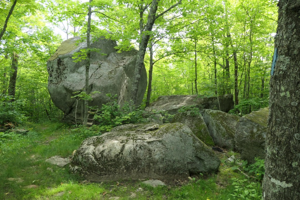 The trail continues to be so nice. It is flat and not muddy and Machine and I walk along pleasantly taking in the morning. I explain to him how Lilly’s Island yesterday reminded me of a korok puzzle in Breath of the Wild, and this gets us talking about a video game about thru-hiking that someone could make called Triple Crown. It would be like a combination of Sims and Breath of the Wild: you’d have to keep your hiker alive and reasonably happy, you could make little meals at camp with combinations of things you buy in town, and you lose hearts if you miss something and have to go back. There would also be places where you could go to upgrade your setup and little side quests with spur trails. I get so lost in brainstorming this amazing game idea that soon almost two miles I’ve passed and we’re at what’s marked on Avenza as “huge glacial erratic.”Later on, through the wonders of Father Google, we learn that a glacial erratic is a rock deposited by a glacier that doesn’t match the bedrock or the surrounding area. Neat!