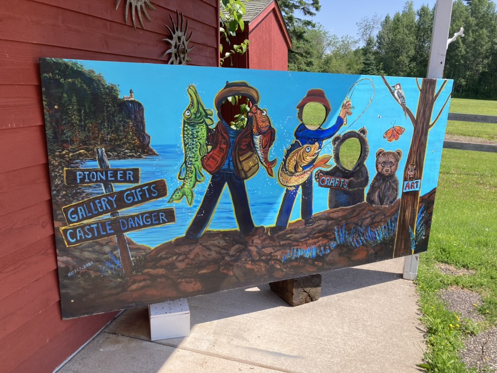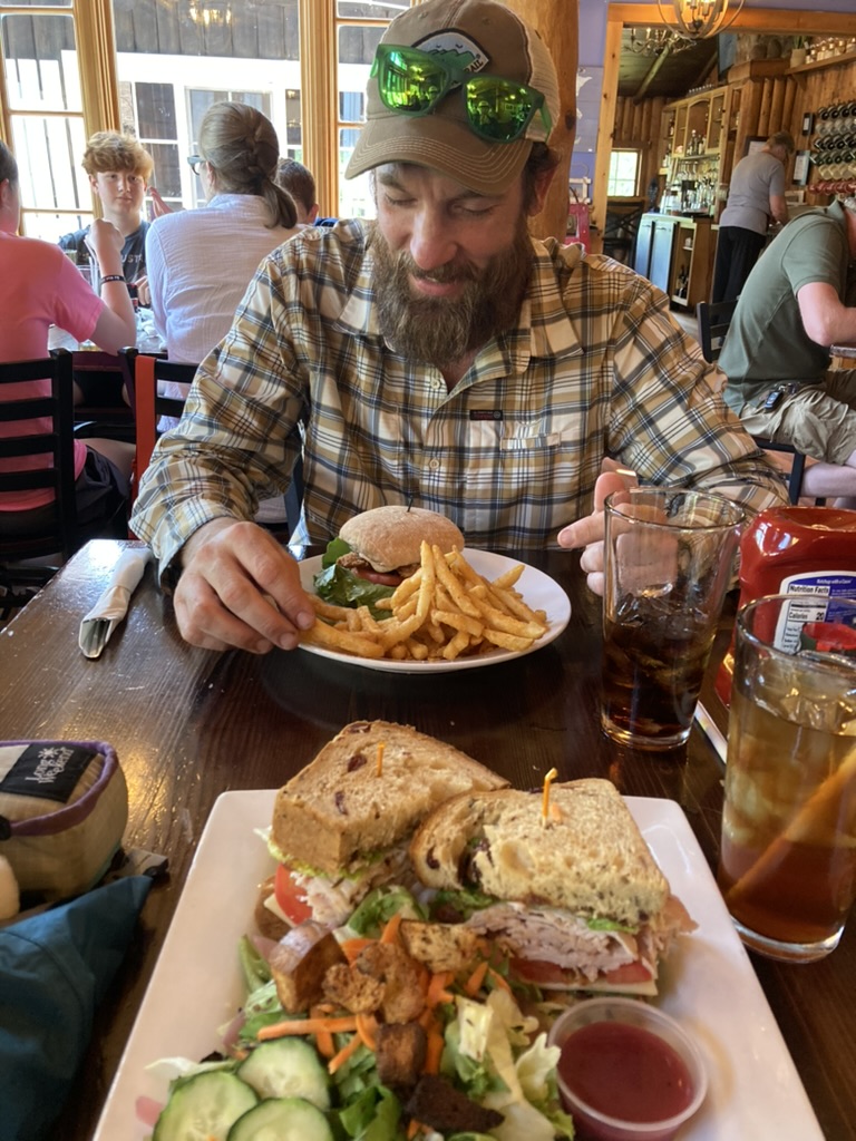 We get closer and the words reveal themselves as “Gifts” and “Local Arts and Crafts.” Ok, I want to check it out, but less exciting than “grill” or “lunch” or “bar” in this moment. But then I look across the street and see the Grand Superior Lodge, and underneath, the phrase “Grand Superior Burgers” next to “Try our new menus.”