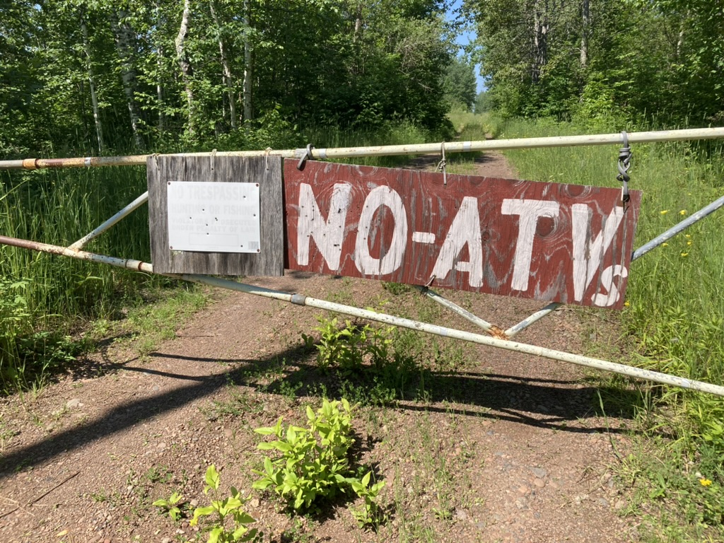 We escape the park via the parking lot and then the road. The lot is jam packed and I’m grateful to be vehicle-less in this moment. We spot a Gitchi-Gami sign and take photos with it since this is where it stops and we won’t have our old friend to bail us out anymore when the SHT gets too shit. Thanks for everything, Gitchi-Gami!