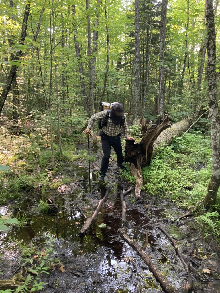 As I’m getting close to the road where we planned to have lunch, I hear Machine calling me. We both walked right over the last water and realized it too late. So we have to scoop some from a semi-stagnant bog-brook. Our poor filters.