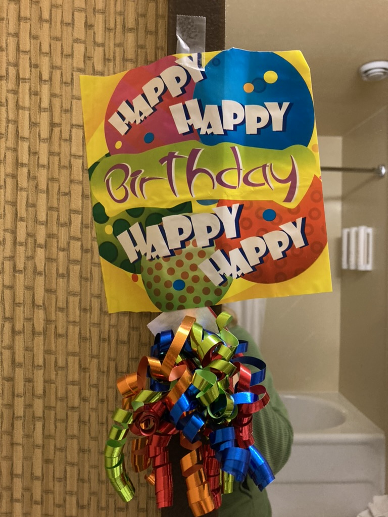 Staying in town for one last night means, obviously, that we do not get an early start. For one, it’s Machine’s birthday, and I wake up early and attempt to subtly decorate the room before he wakes up. Back in Two Harbors, the only birthday things I could find at the store were some plastic party loot bags and a couple of gift ribbons, so I cut the top and bottom off the bags and used them as little wall hangings and added the ribbons underneath for flair. It’s not that impressive, but I simply cannot go without celebrating a birthday with decorations. I just can’t. On top of birthday festivities, there’s also another glorious hotel breakfast with copious coffee. What does it say about this hike that the non-hiking part is way more fun than the hiking part? I’ve blown my budget a little, but alas, I feel like I had to do what I had to do in order to enjoy this hike. It’s my summer vacation, dang it! All of this is to say: no early start, of course.